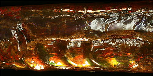 標本名:アンモライト化したバキュリテス Baculites cuneatus